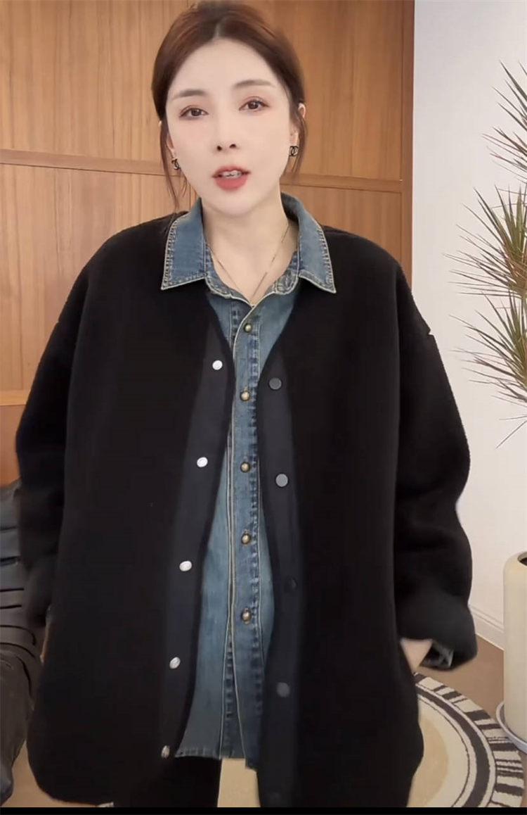 韩版 羊羔毛加厚外套女秋冬2024新款 宽松今年流行毛绒上衣 时尚 正品