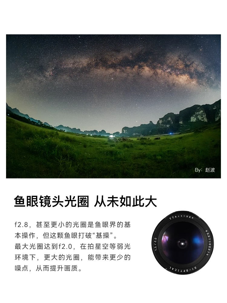 铭匠光学7.5mm f2广角鱼眼镜头适用索尼E松下尼康Z30佳能R50富士X