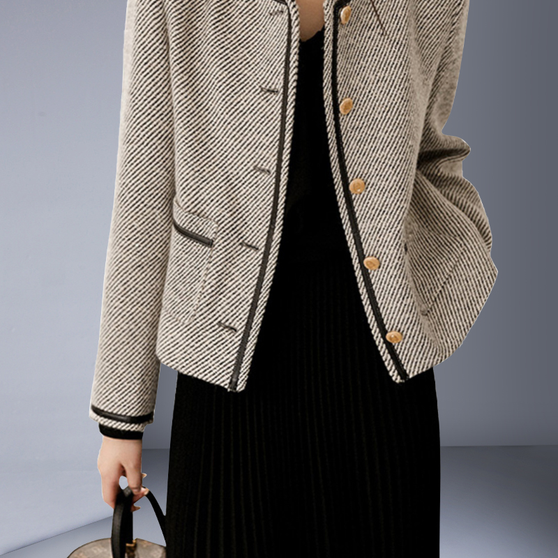 新款 2025冬季 秋水伊人优雅翻领毛呢外套 通勤大衣 100%绵羊毛
