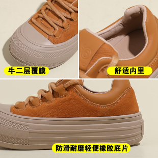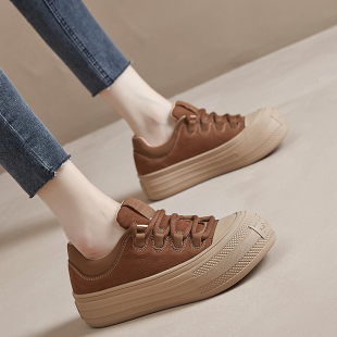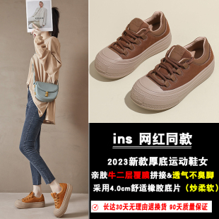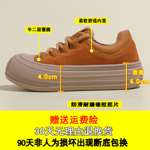 休闲厚底皮鞋 大头丑萌运动鞋 百搭真皮爆款 轻便2025春秋季 软底 女款