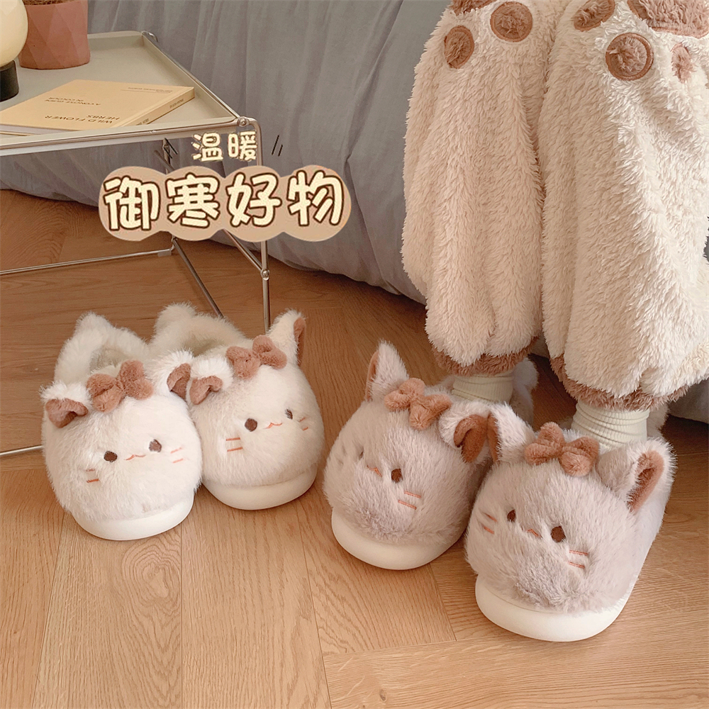 男 可爱亲子毛毛棉拖鞋 chikoku小狗棉拖鞋 女冬家居包跟保暖月子鞋
