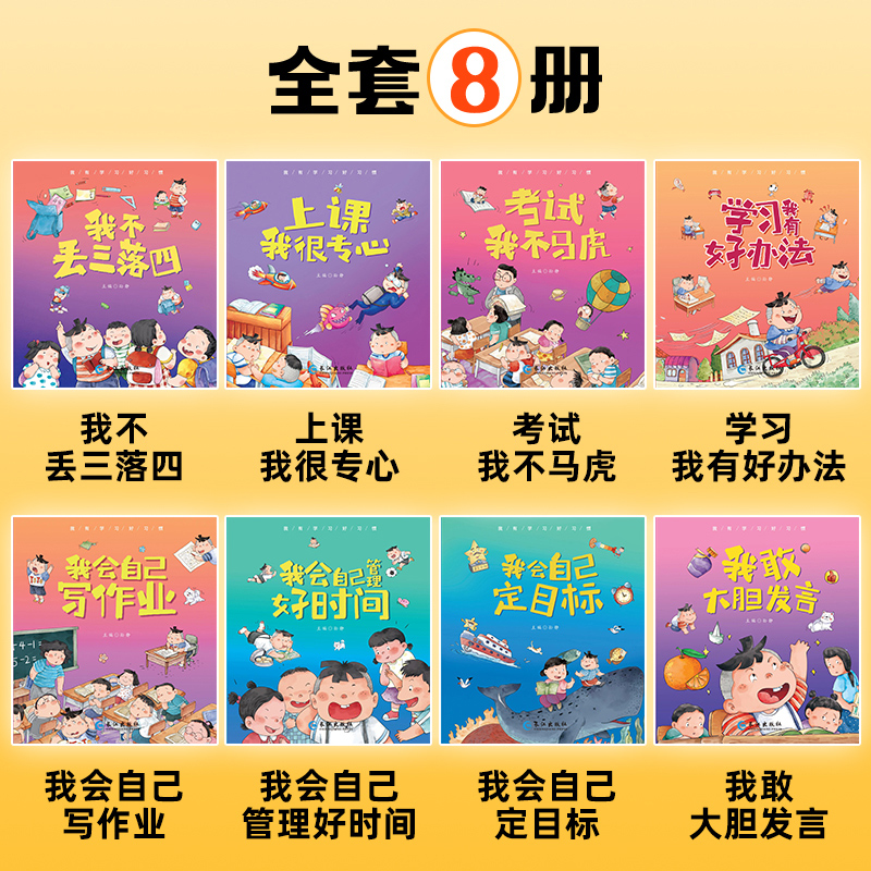 12岁小学生好习惯养成书籍漫画版 学会管理好时间上课专心学会自己写作业自己定目标不丢三落四 漫画小学生自我管理启蒙书全8册