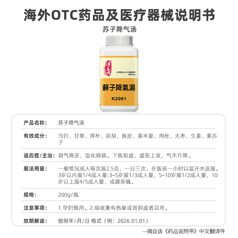 汉立方感冒药流鼻涕鼻塞咳嗽止咳化痰苏子降气汤 自营