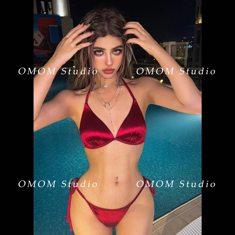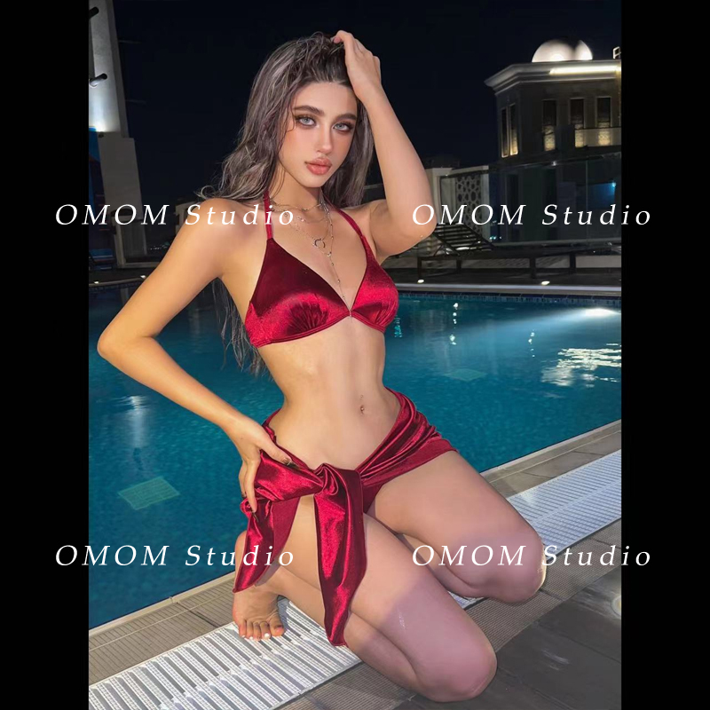 omom新款 性感纯欲泳衣性感比基尼三件套小胸聚拢泳装