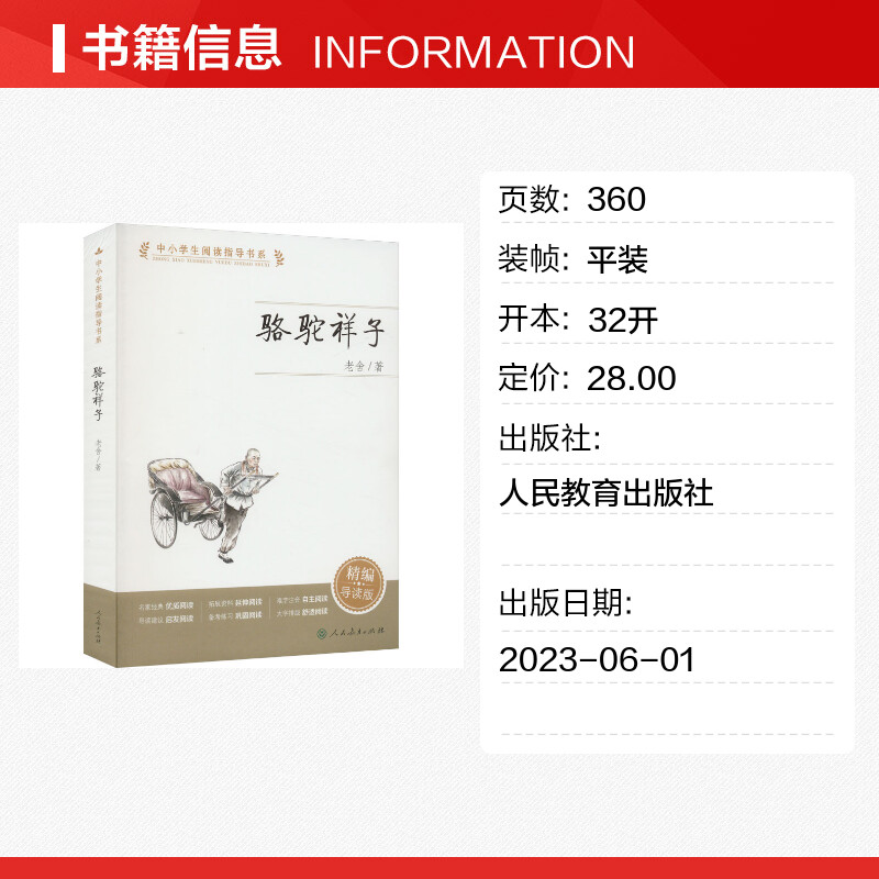 新华文轩 三四五六年级小学生必课外阅读书儿童文学名家推荐 骆驼祥子 中小学生阅读指导书系 读物本人民教育出版 老舍精编导读版