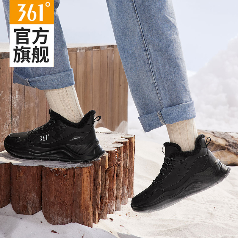 运动鞋 子女老爹鞋 女2025冬季 皮面休闲跑步鞋 加绒保暖棉鞋 361女鞋