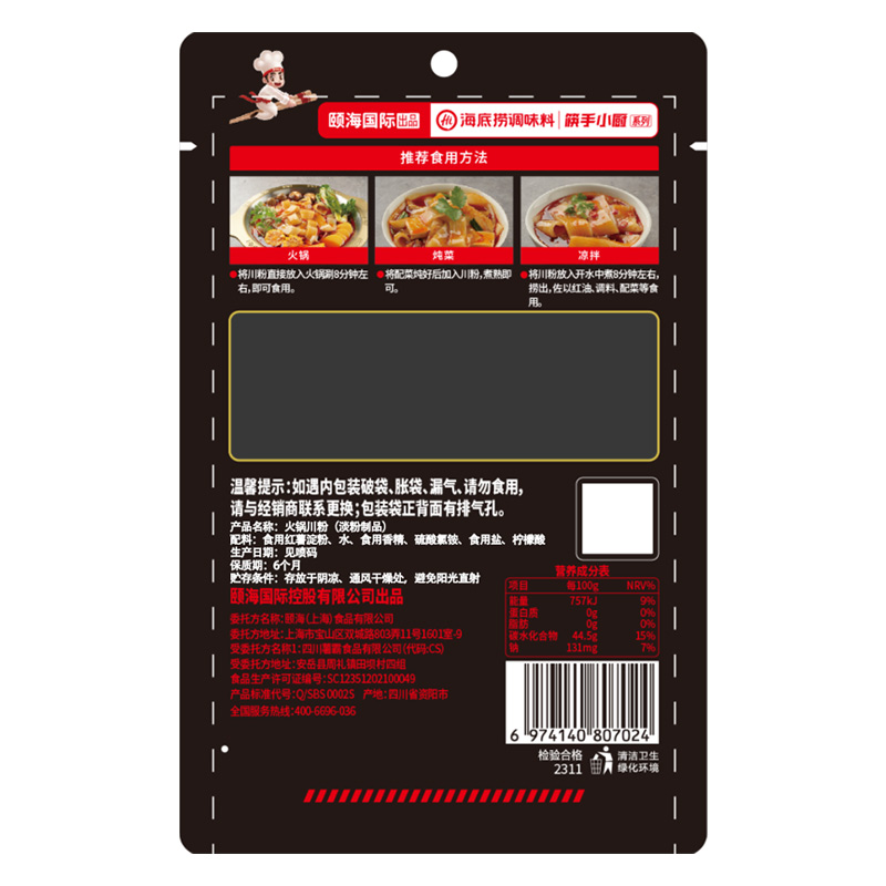 海底捞火锅川粉苕皮200g袋装 家用火锅炖菜凉拌软糯细腻多用火锅粉