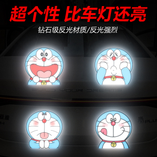 电动车装 车身汽车反光警示车贴遮痕 饰哆啦A梦反光贴创意贴纸个性