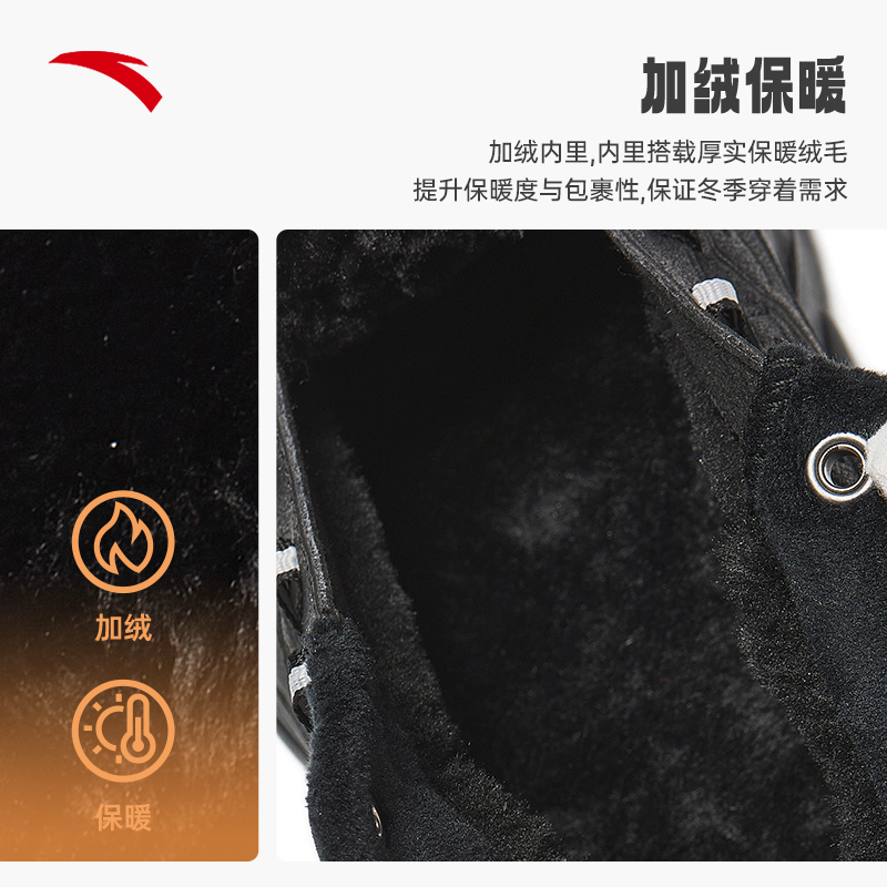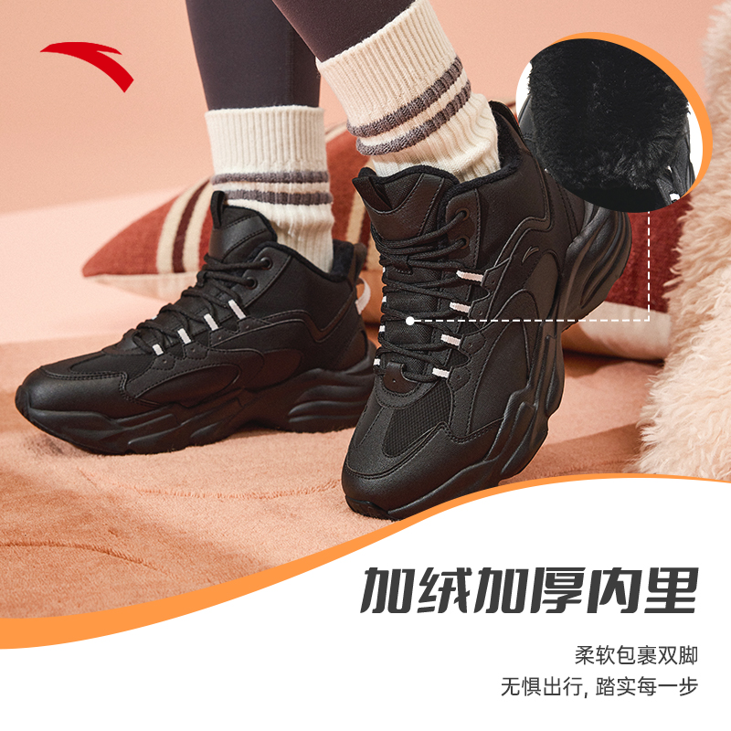 棉鞋 休闲鞋 女冬季 厚底增高保暖加绒高帮黑色运动鞋 新款 安踏行者