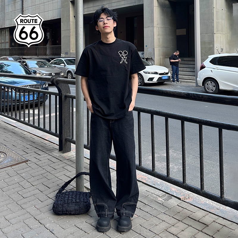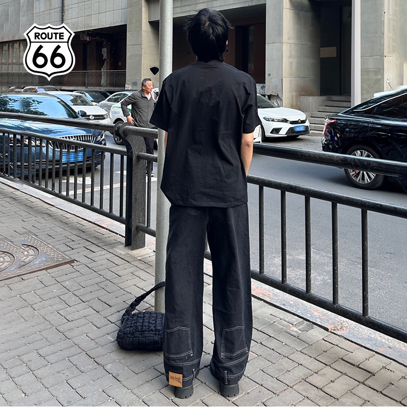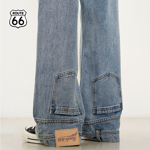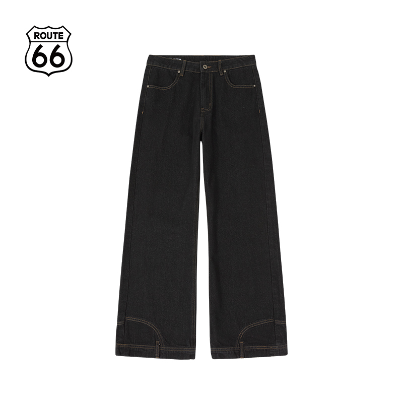 清仓价 情侣款 ROUTE66美式 宽松直筒牛仔裤 长裤 复古clanfit倒装
