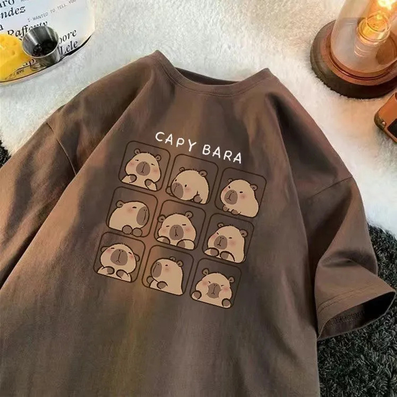 夏季 t恤情侣装 宽松上衣 300斤纯棉港风chic卡皮巴拉印花短袖 特大码