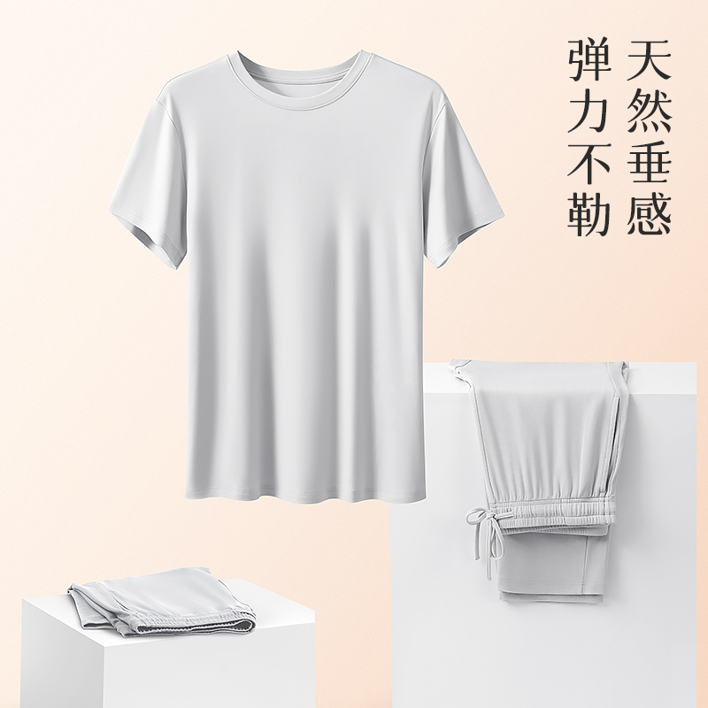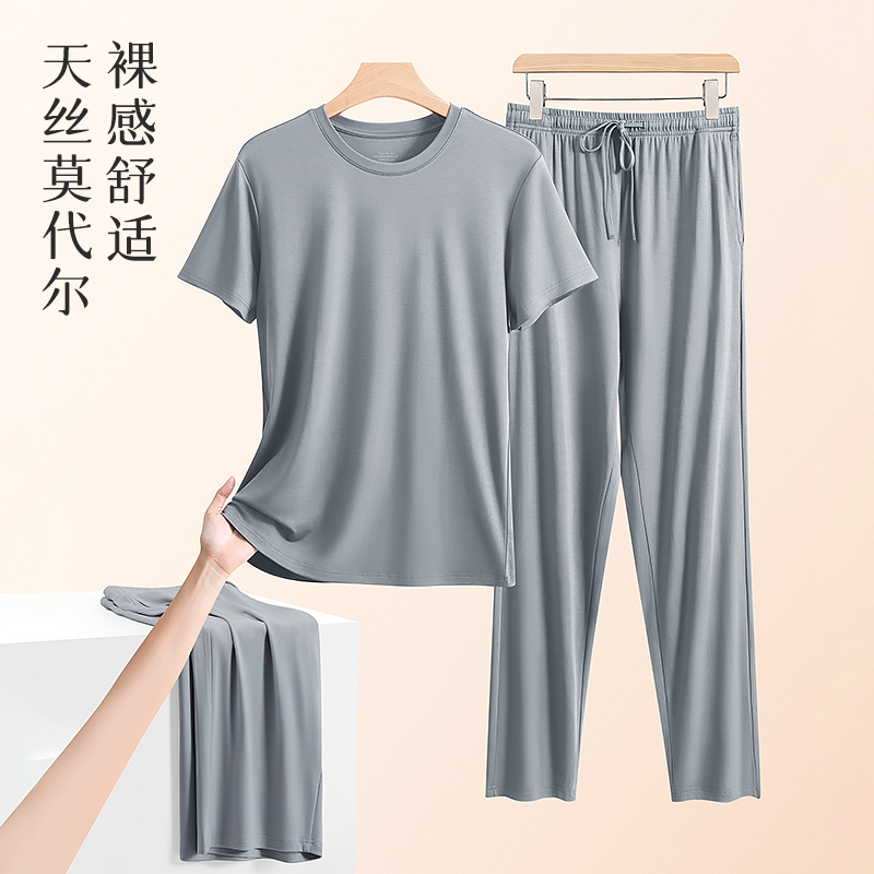 长裤 天丝莫代尔睡衣三件套男士 冰丝夏天短袖 薄款 家居服可外穿 夏季