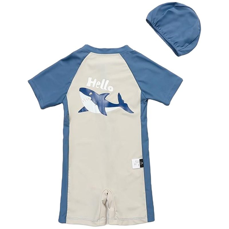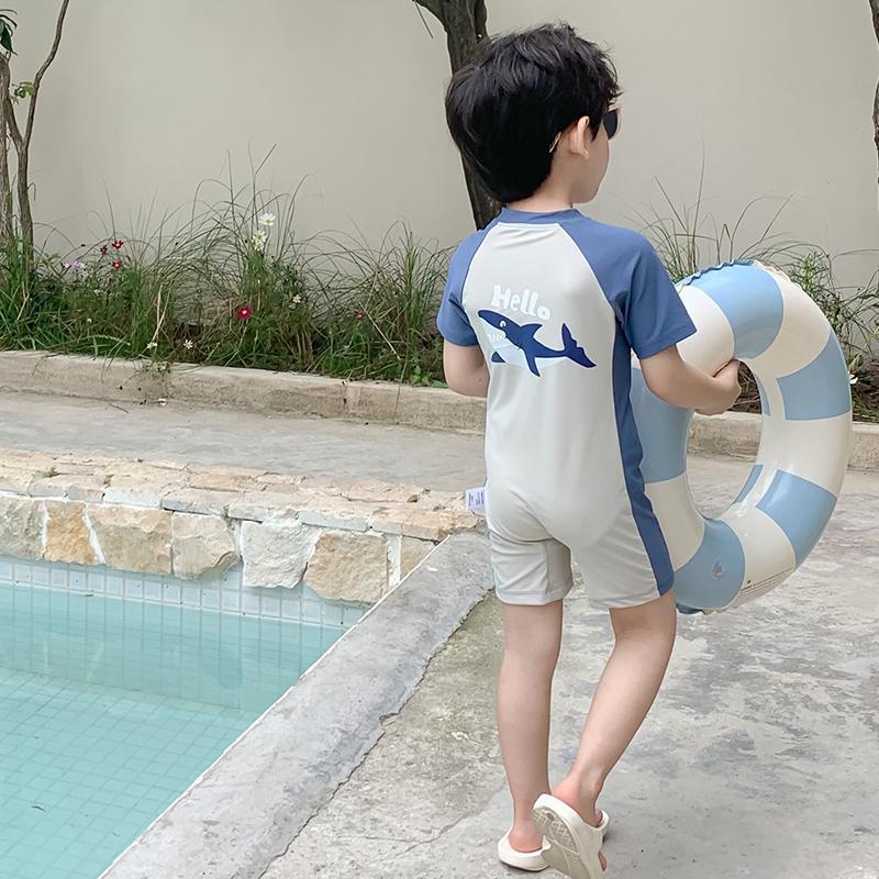 可爱鲨鱼防晒速干中小童海边度假套装 儿童泳衣男童连体短袖 夏季