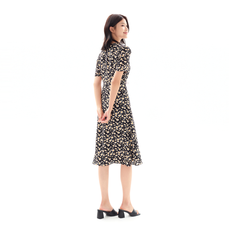 中长款 2025夏新款 显瘦A字百褶裙短袖 气质修身 藏蓝色连衣裙 淑女装