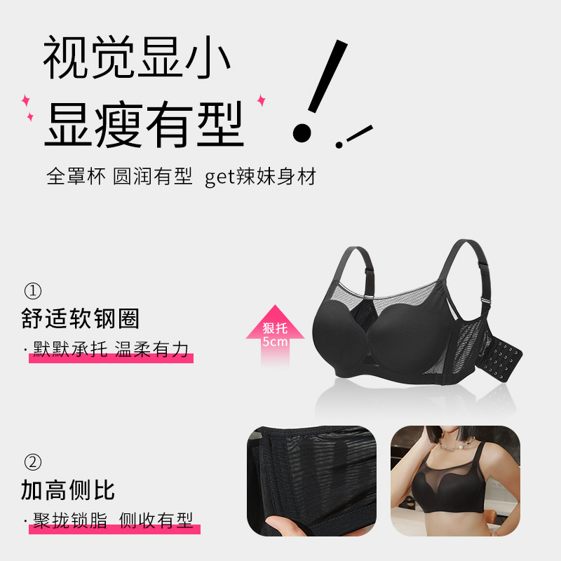 收副乳胸罩胖mm大码 大胸显小内衣女薄款 超薄文胸 沐夏芭蕾 怡倩