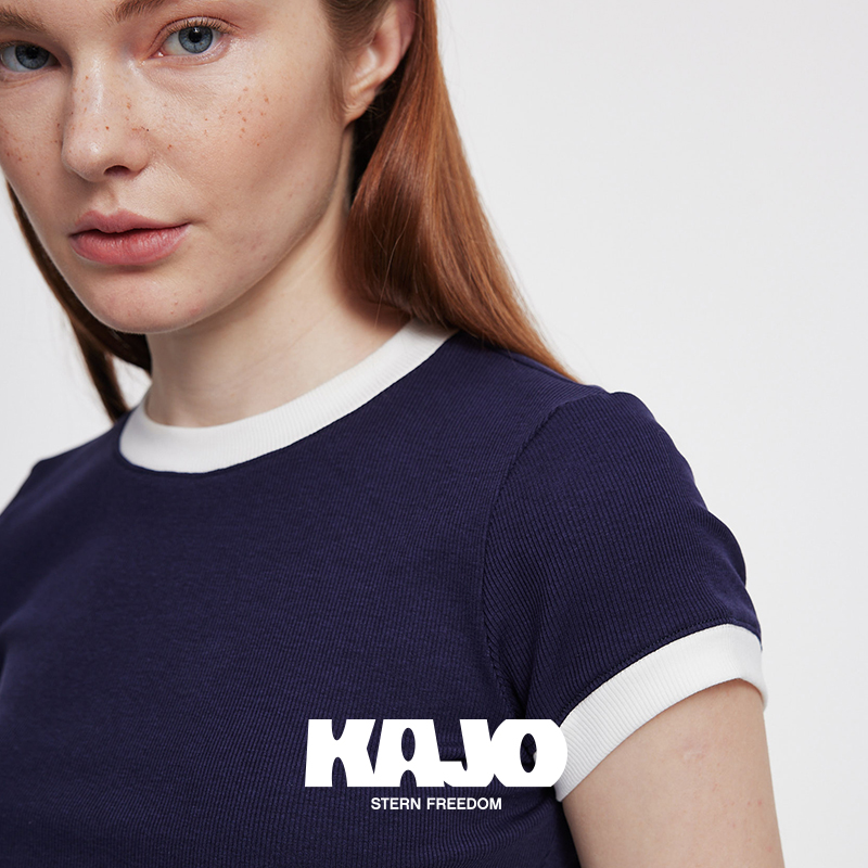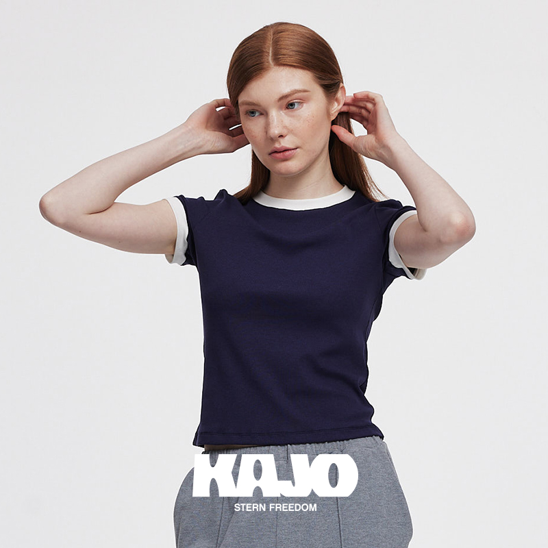 小众天丝绒撞色坑条圆领短袖 KAJO美式 T恤24AW007 清仓6折购