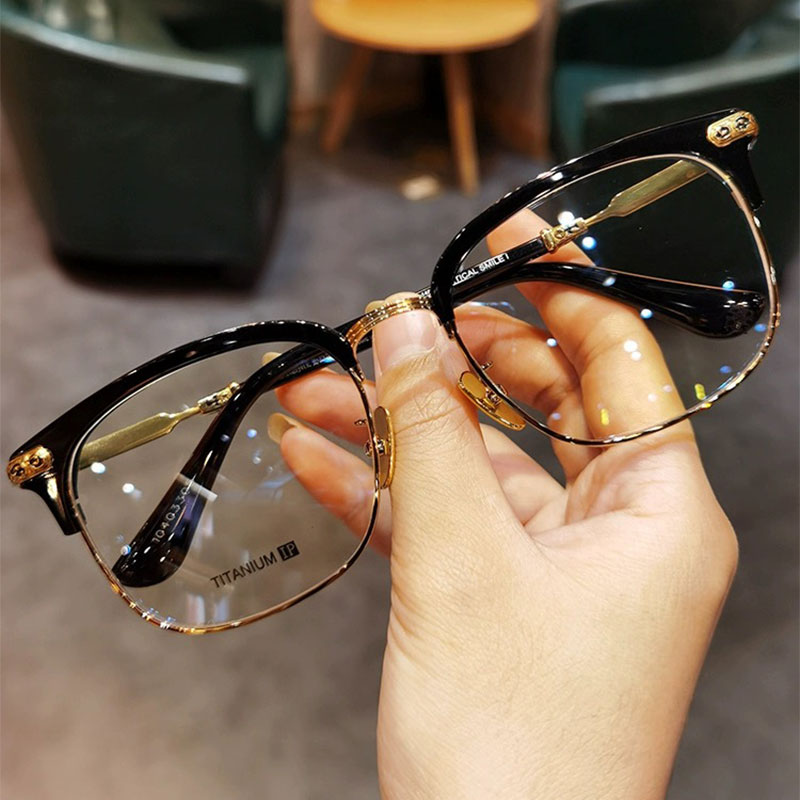 变色近视眼镜男款 斯文败类半框防蓝光平光镜眼镜框架感光可配黑框