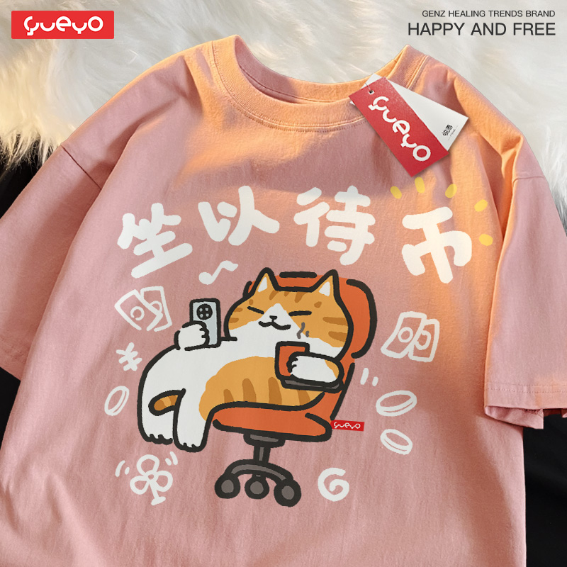 t恤男休闲夏季 上班族打工人纯棉落肩短袖 透气搞笑 坐以待币 悦游