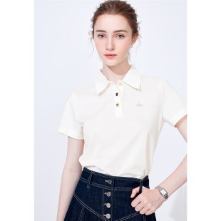 翻领休闲上衣05312790 纯棉双面布纯色气质长袖 佐丹奴Polo衫 女新款