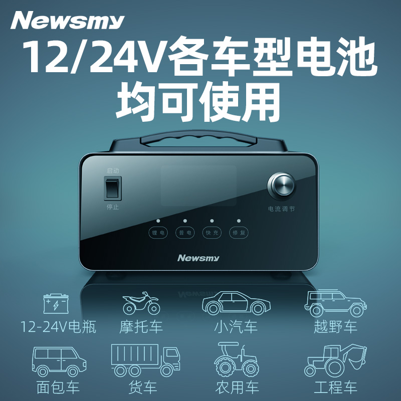 纽曼汽车电瓶充电器12v24v智能脉冲修复摩托车电池充电 大功率
