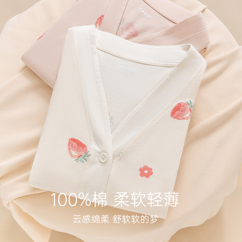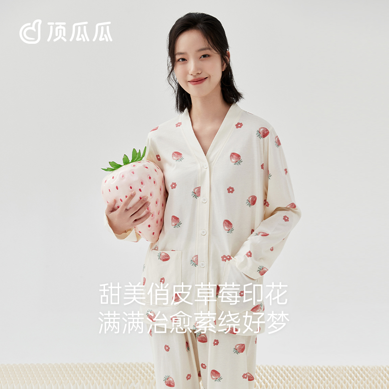 可外穿草莓家居服套装 顶瓜瓜睡衣女秋款 纯棉长袖