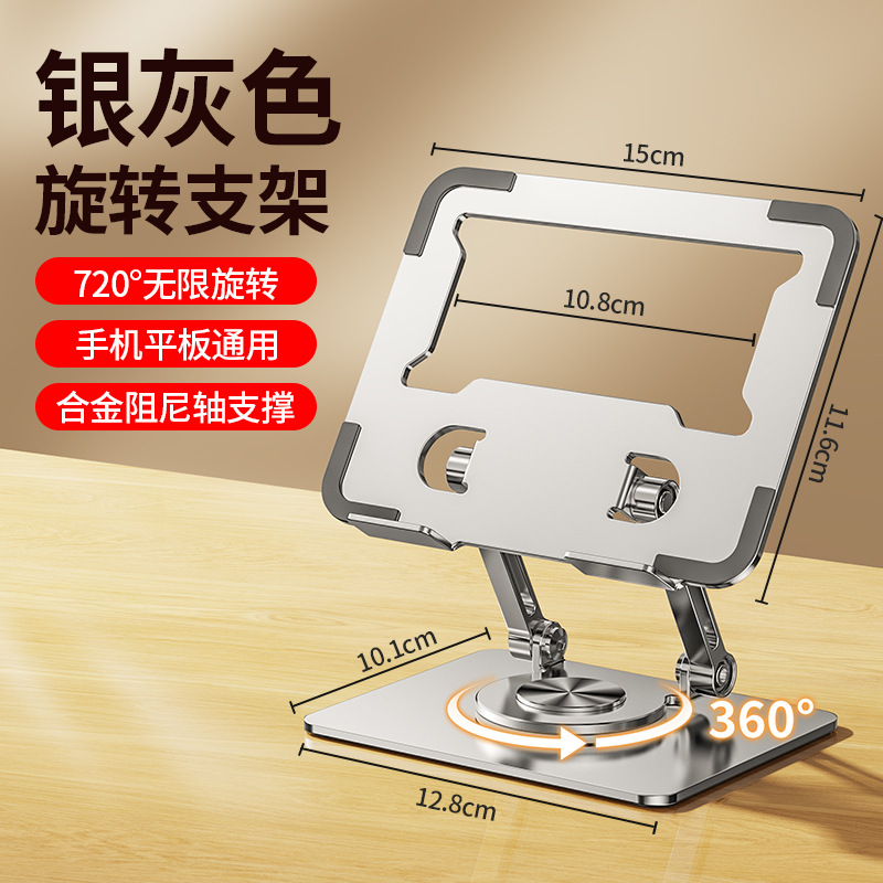桌面懒人平板电脑iPad支架碳素钢金属360度旋转双轴固定调节角度便携折叠收纳直播追剧网课学习手机支撑架