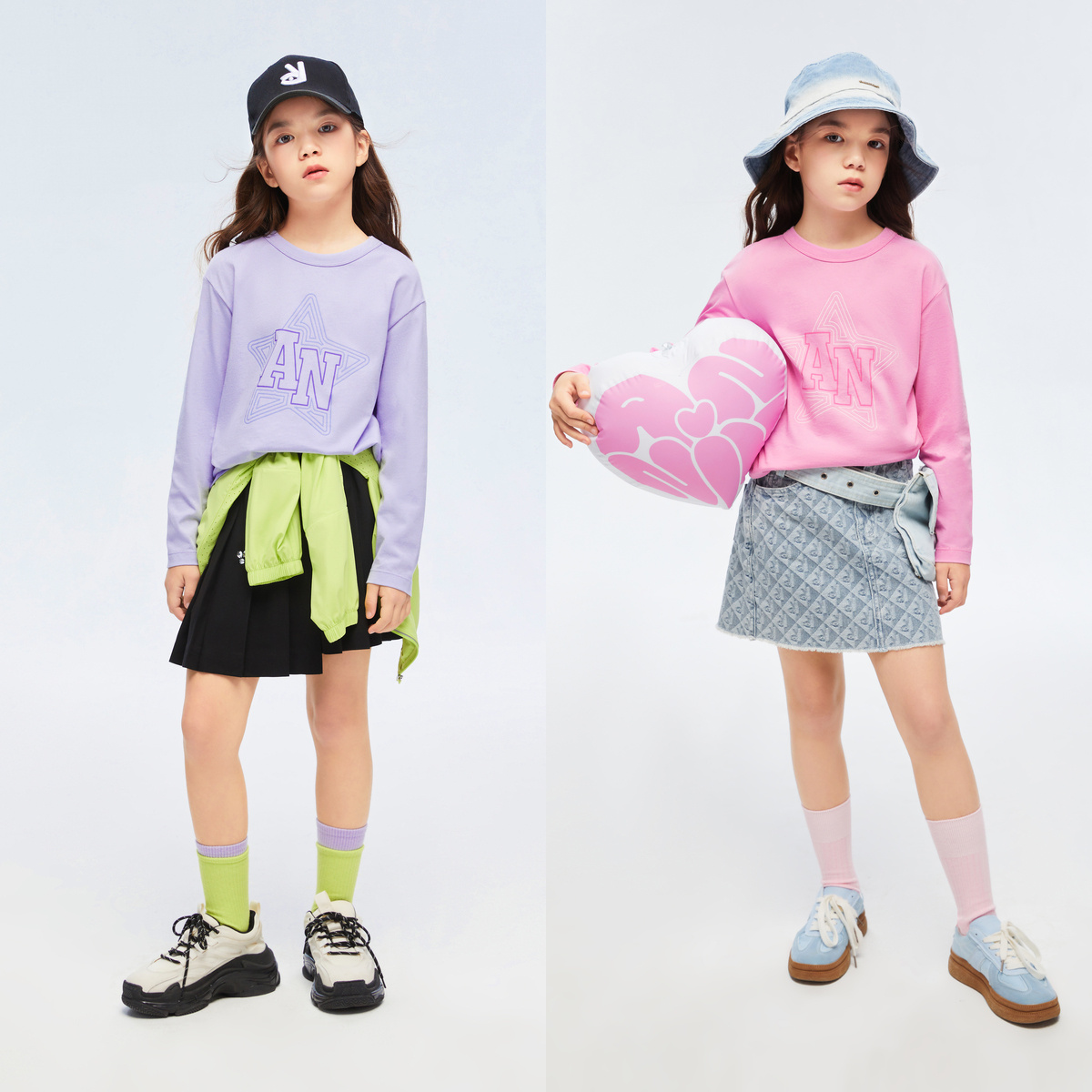 纯棉休闲打底衫 安奈儿男女童装 T恤2024春新款 针织衫 上衣 圆领长袖