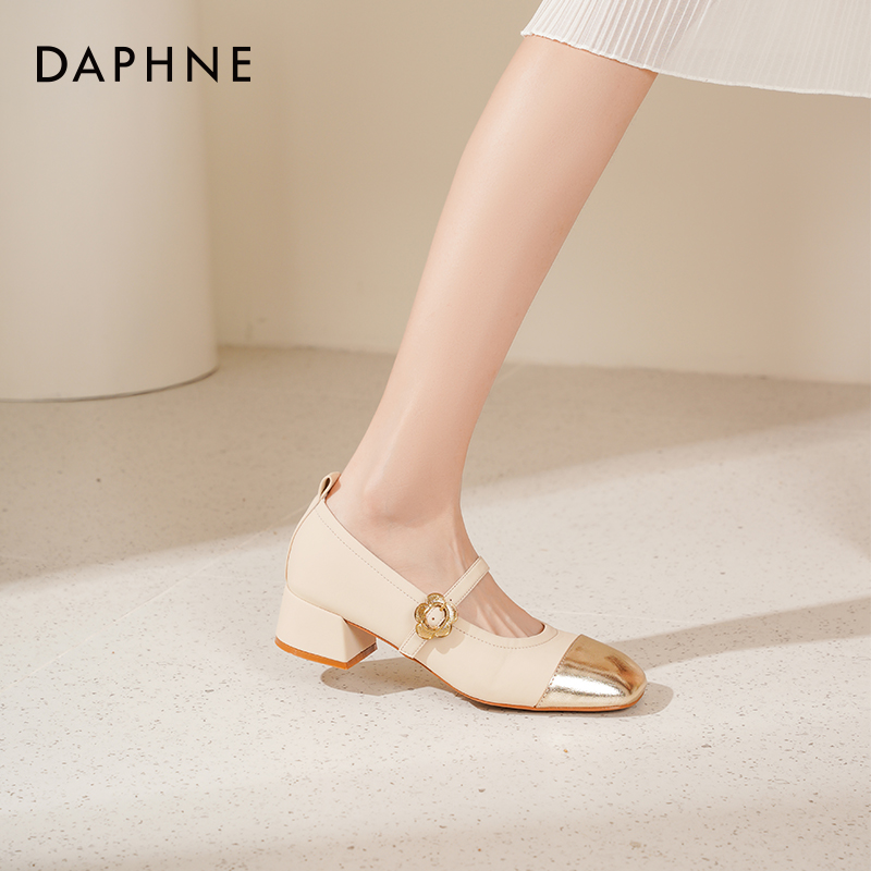 配旗袍白色珍珠粗跟单鞋 达芙妮玛丽珍女鞋 新中式 2025秋季 女 高跟鞋
