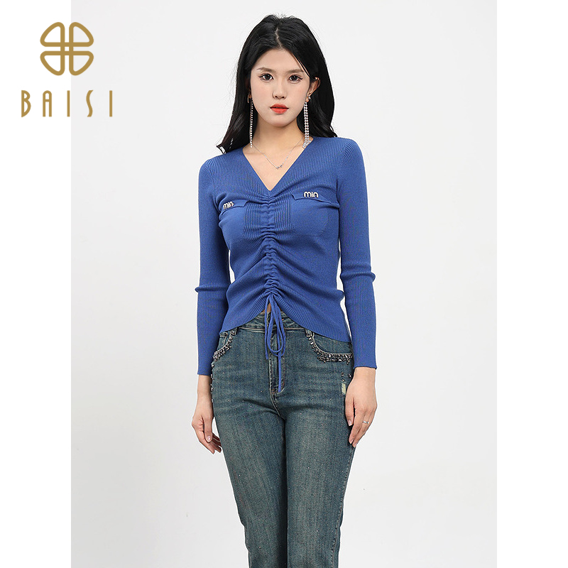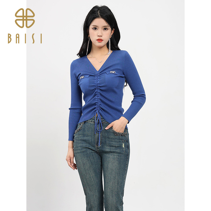 针织衫 御姐流行套头长袖 女 新品 百丝V领成熟小心机上衣2025春季