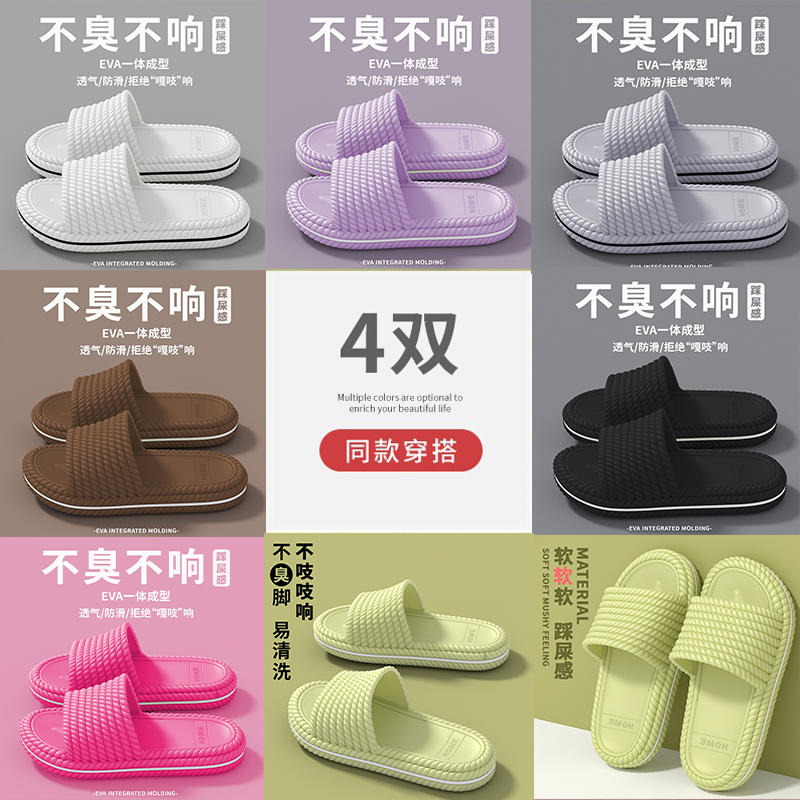 2025新款 女夏季 室内家居浴室防滑情侣家用招待客人凉拖 拖鞋 4双装