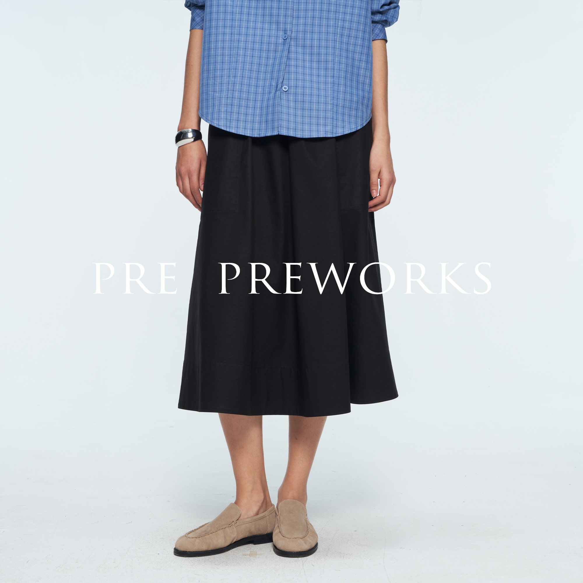 PRE 清冷感腰边褶裥莫代尔棉A字高腰伞裙 PREWORKS轻质极简主义