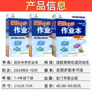 2025秋启东中学作业本七八九年级上册下册人教版 语文数学英语物理同步练习册初中课时作业本教材专项789教辅启动同步复习