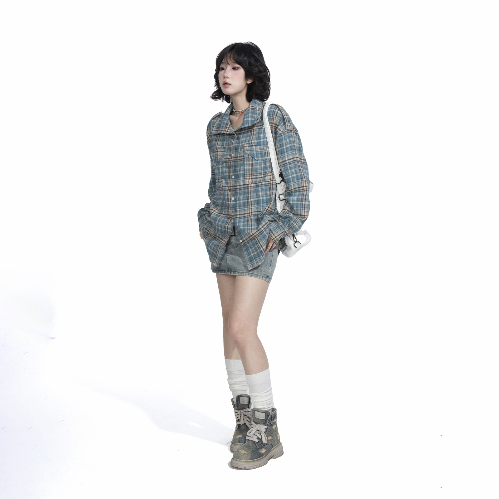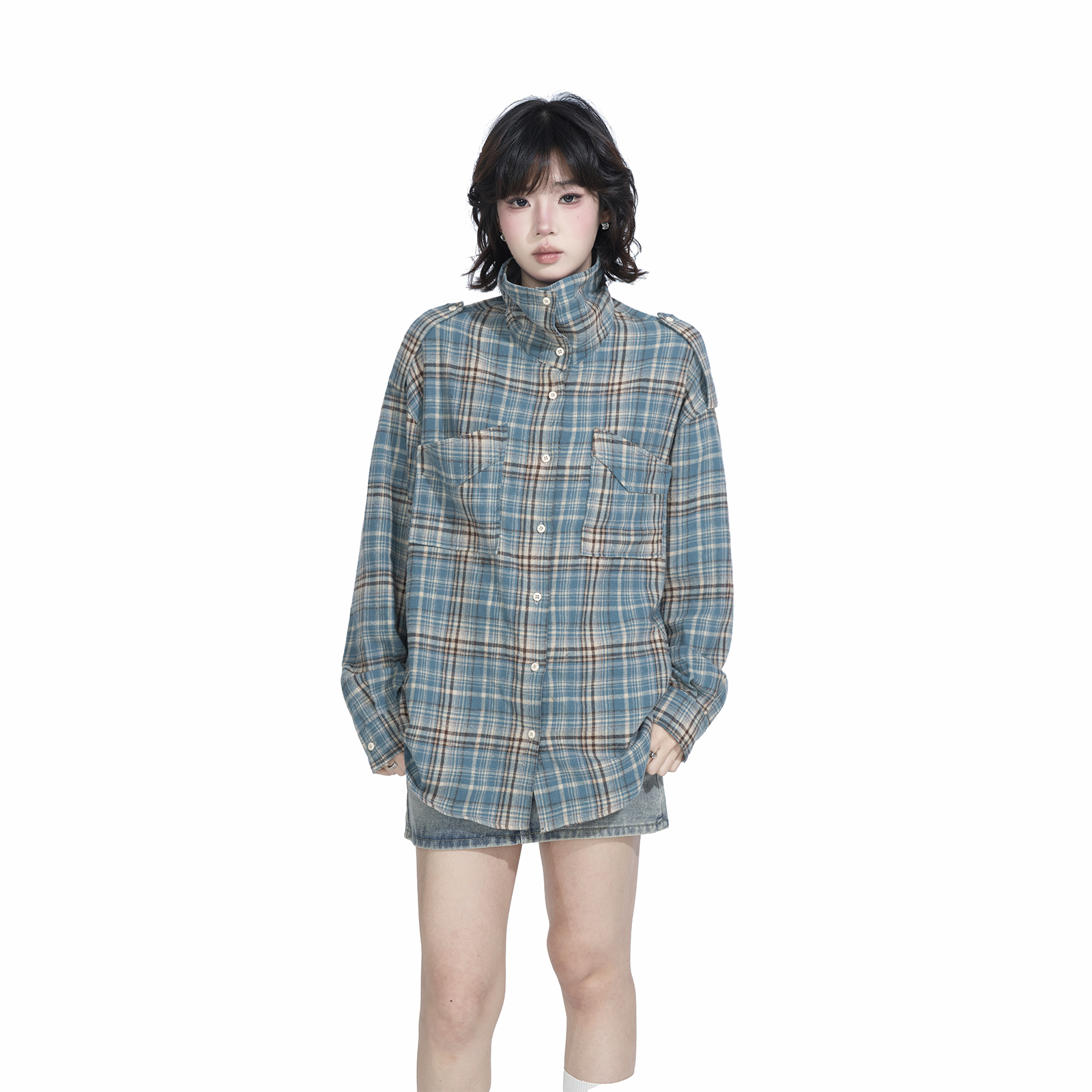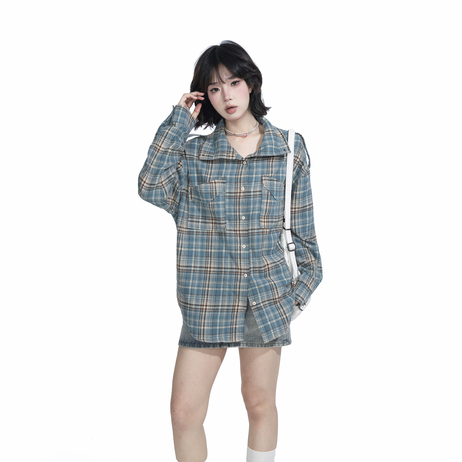 潮牌情侣衬衣宽松街头上衣 2025新款 YEP复古设计感格子衬衫 女春季