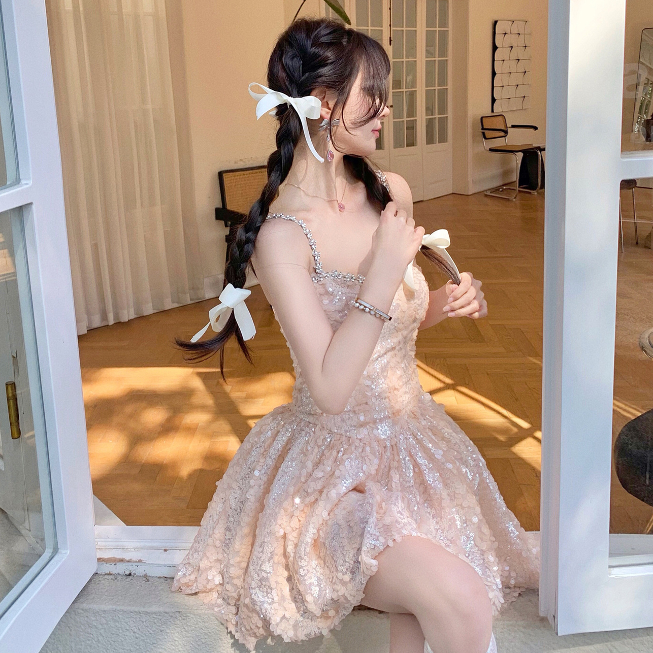 红色连衣裙胸垫吊带裙海边雪纺长裙 2025夏新款 DPLAY 度假系列