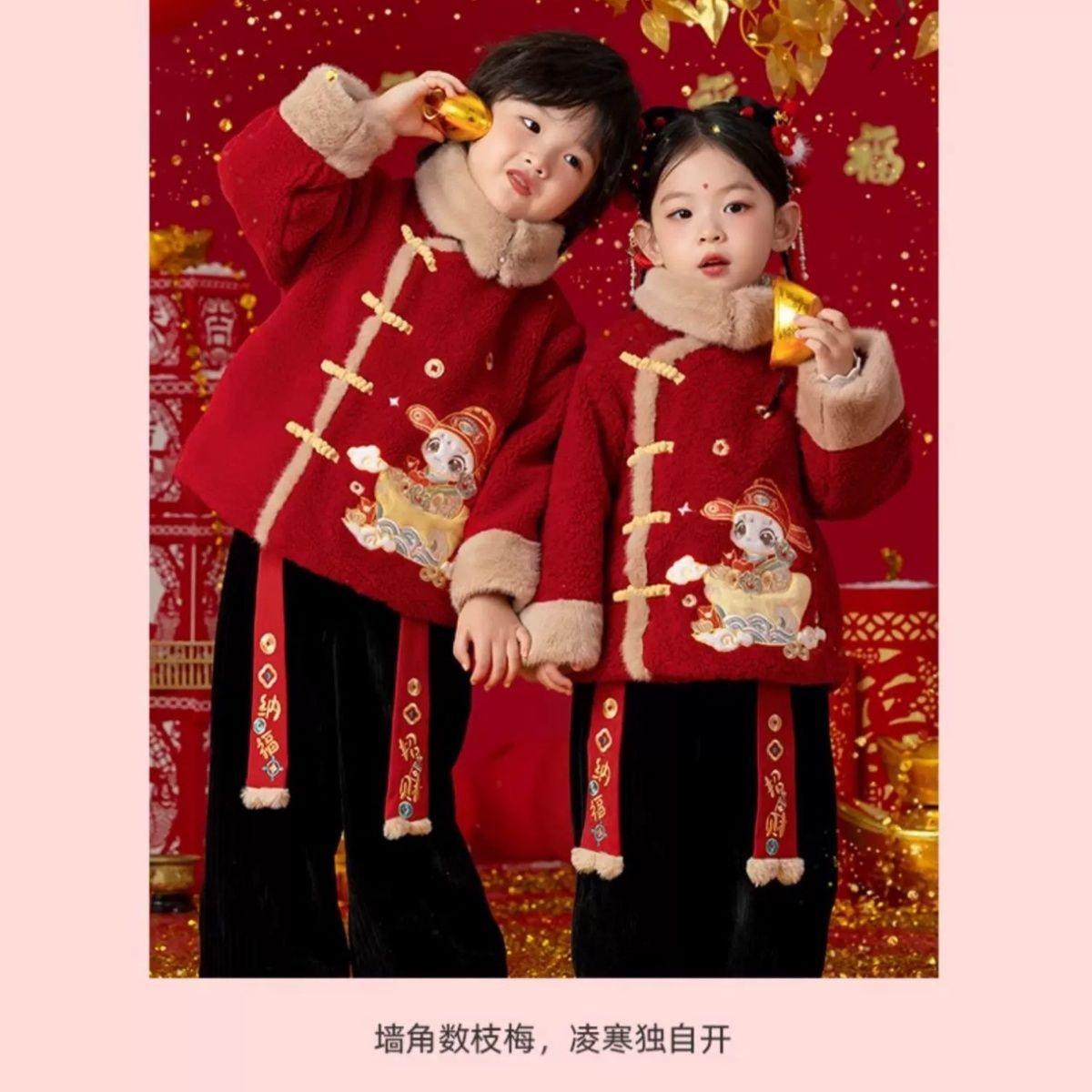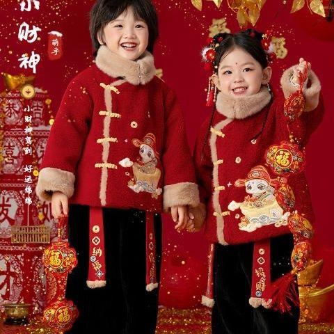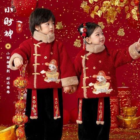 套装 唐装 儿童喜庆新年衣服宝宝中式 小黄鸭布咚汉服男童拜年服冬季
