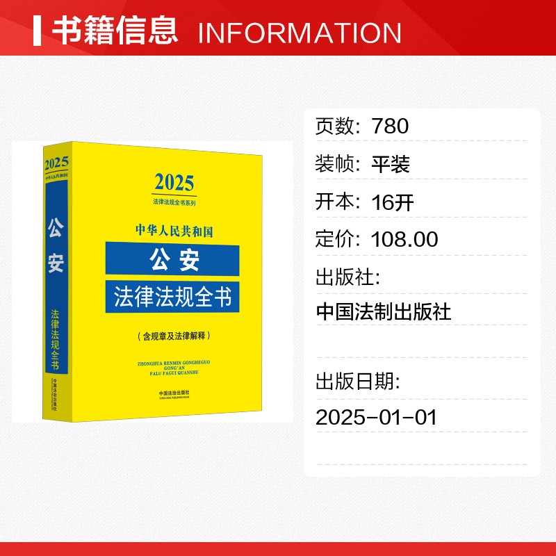 中国法治出版 社 新华书店正版 含规章及法律解释 图书籍 法律法规社科 2025 法律汇编 中华人民共和国公安法律法规全书 编