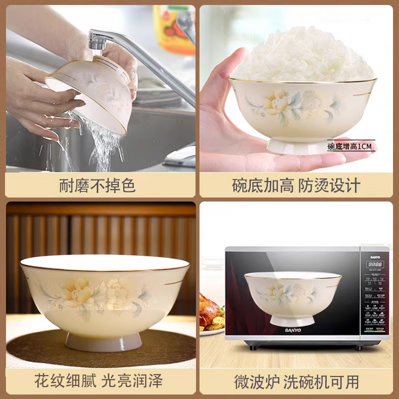 陶瓷泡面碗带盖宿舍用学生专用碗可微波炉面碗食堂个人专用打饭碗