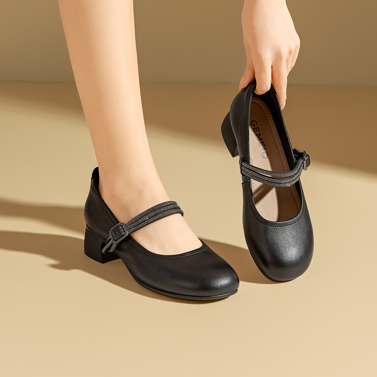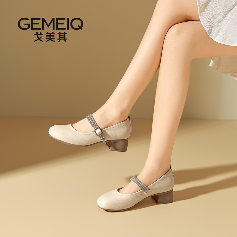 子D3S1DAQ5 真皮不累脚妈妈上班鞋 百丽粗高跟浅口单鞋 女2025新款