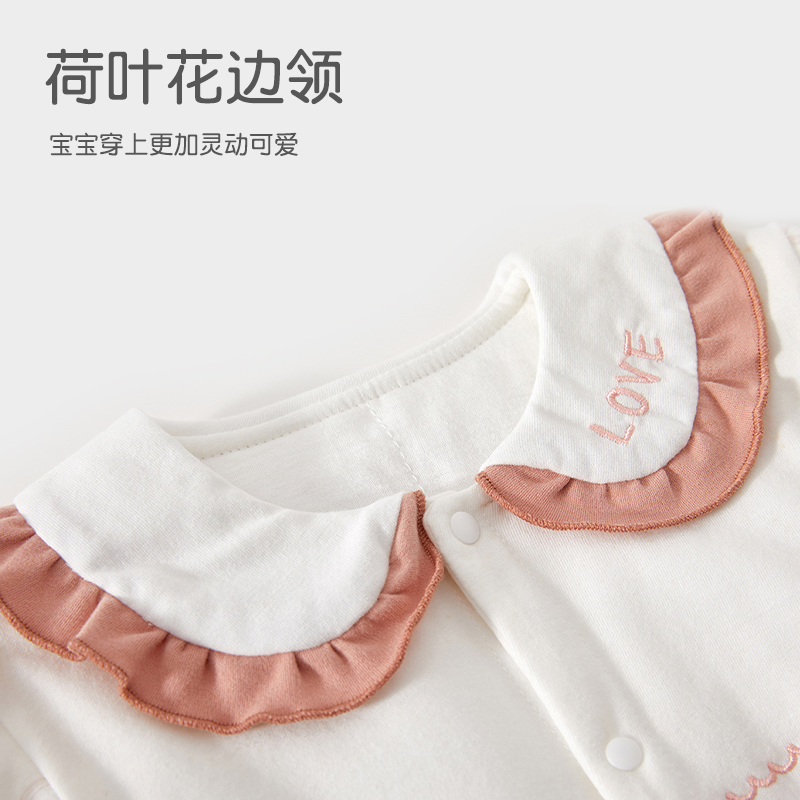 棉衣爬服外出衣服a类春装 婴儿连体衣秋冬夹棉保暖女宝宝冬季 薄款