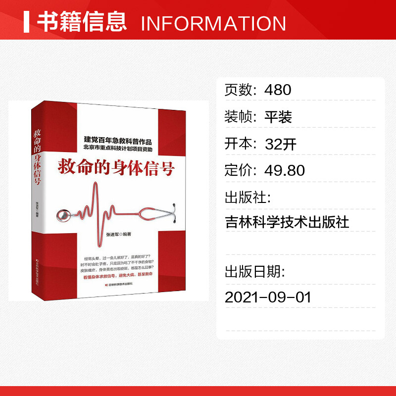 编 中医养生生活 新华书店正版 救命 吉林科学技术出版 张进军 图书籍 社 身体信号