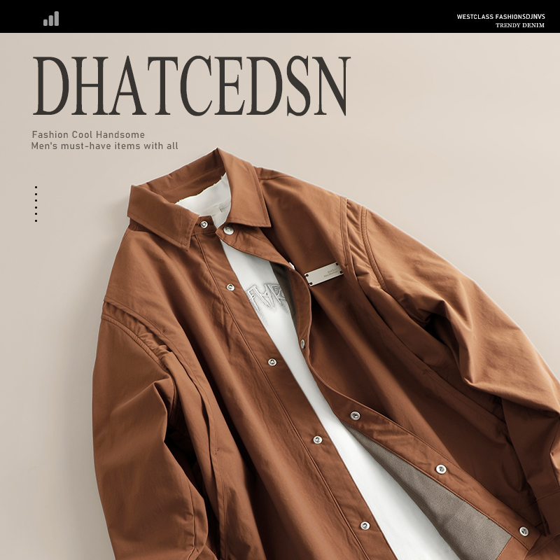 外套男潮休闲宽松廓形假两件上衣 衬衫 美式 休闲设计感vintage长袖