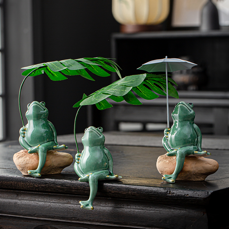 宇轩 饰阳台工艺品桌面鱼缸造景 青蛙撑伞茶宠摆件户外花园庭院装