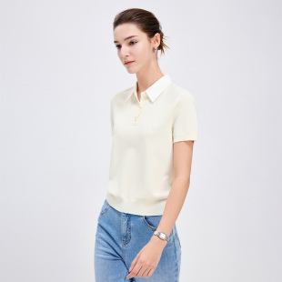 新款 女短袖 白色翻领T恤 休闲针织polo衫 Navigare意大利小帆船夏季