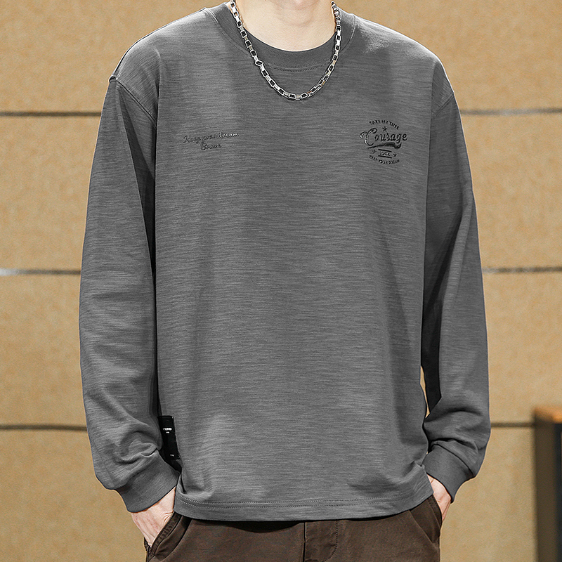 纯棉竹节棉长袖 印花内搭打底衫 t恤男士 圆领潮牌时尚 男 春秋季 美式