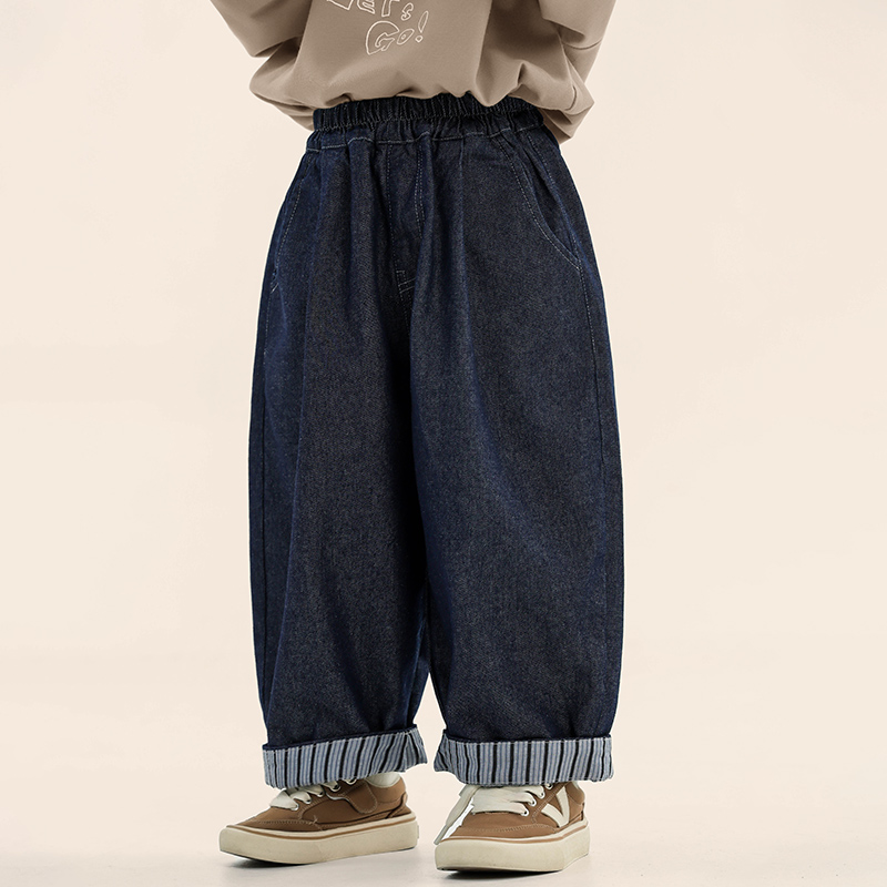 子中小童休闲裤 积木城堡男童牛仔裤 儿童条纹撞色裤 新款 2025秋装