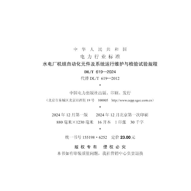 619—2024 DL/T 水电厂机组自动化元 件及系统运行维护与检验试验规程 619—2012 代替DL/T 按需印刷