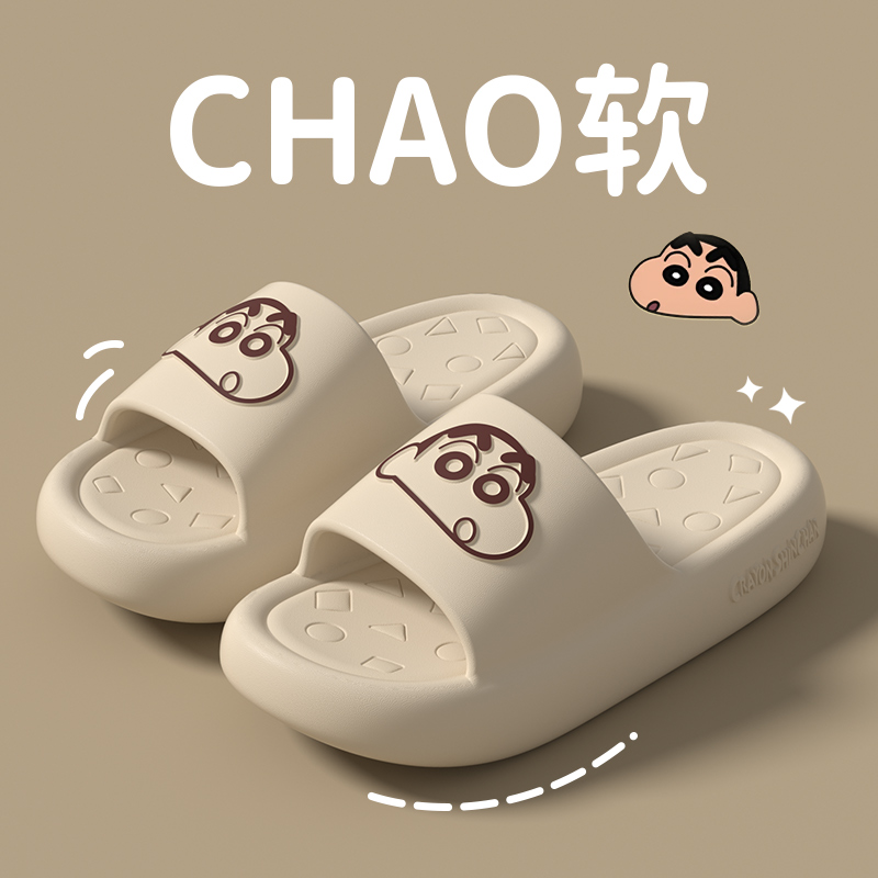 男 室内居家踩屎感防滑外穿情侣可爱拖鞋 卡通蜡笔小新凉拖鞋 女夏季