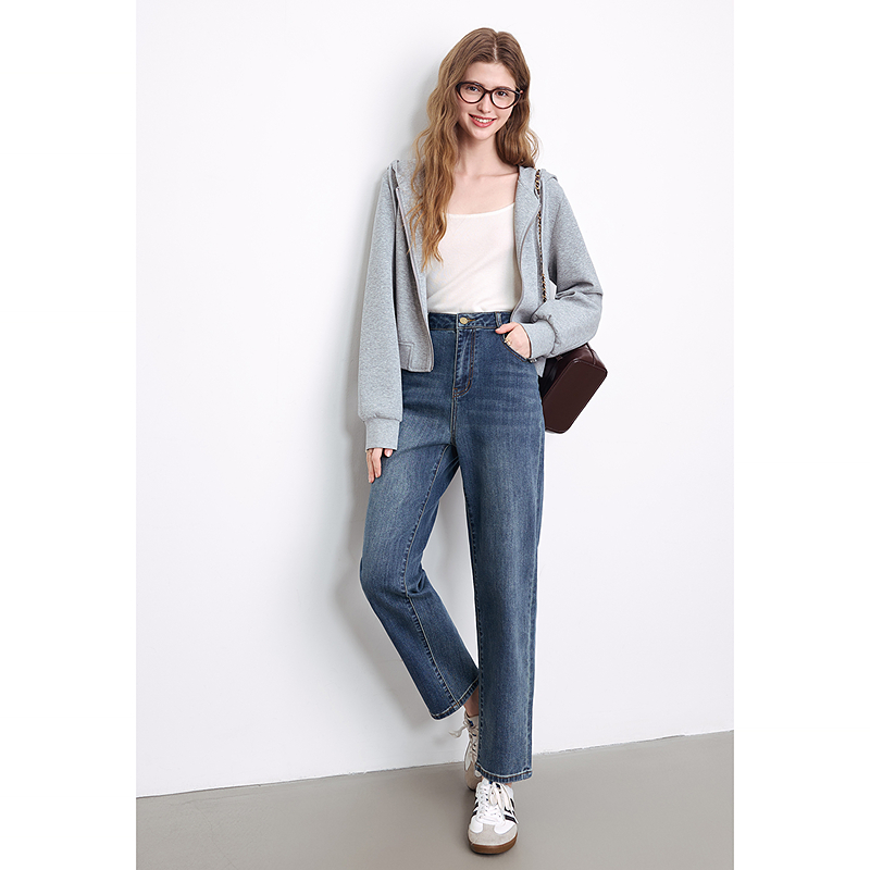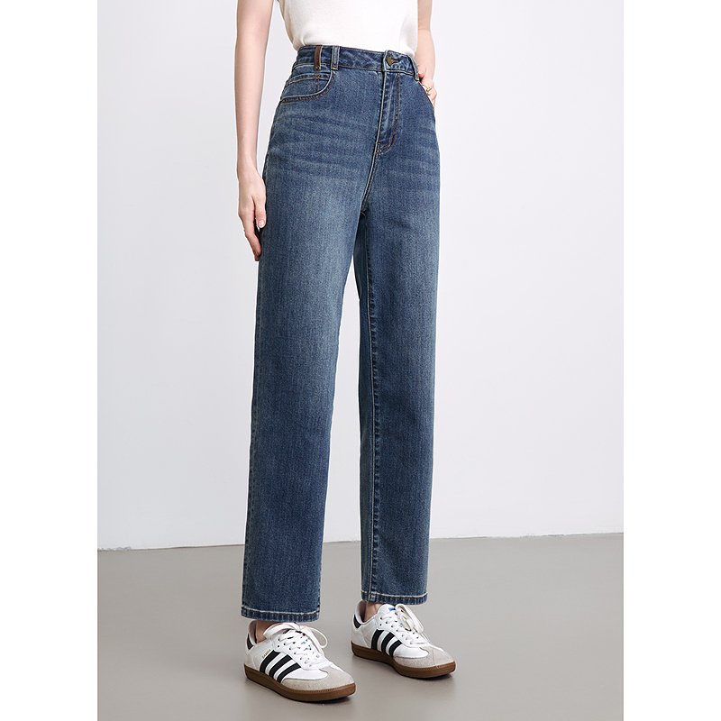 子女 百搭休闲通勤牛仔蓝阔腿长裤 POLOWALK女士直筒牛仔裤 秋冬新款