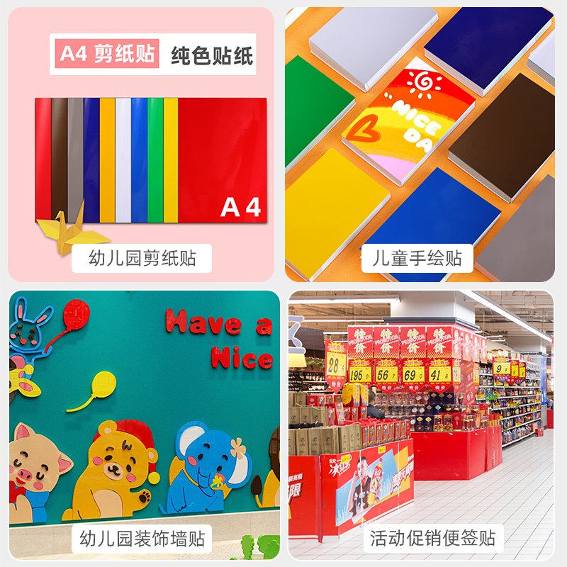 A4彩色手工纸纯色不干胶贴纸自粘广告纸即时贴幼儿园装 饰墙纸防水