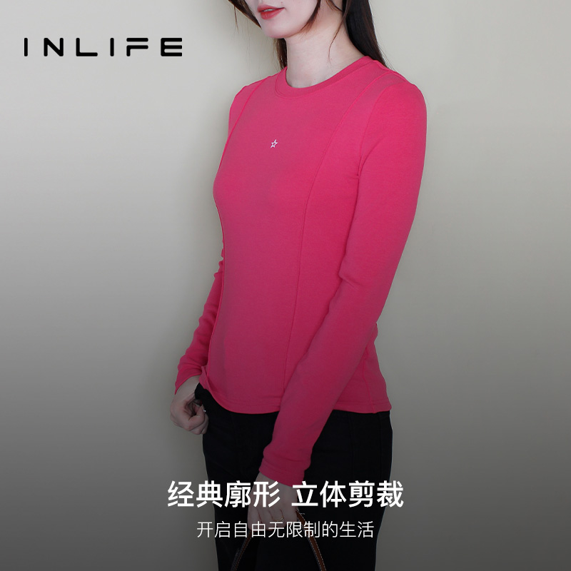 简约修身 伊纳芙时尚 新款 T恤女春季 休闲气质圆领上衣 百搭正肩长袖
